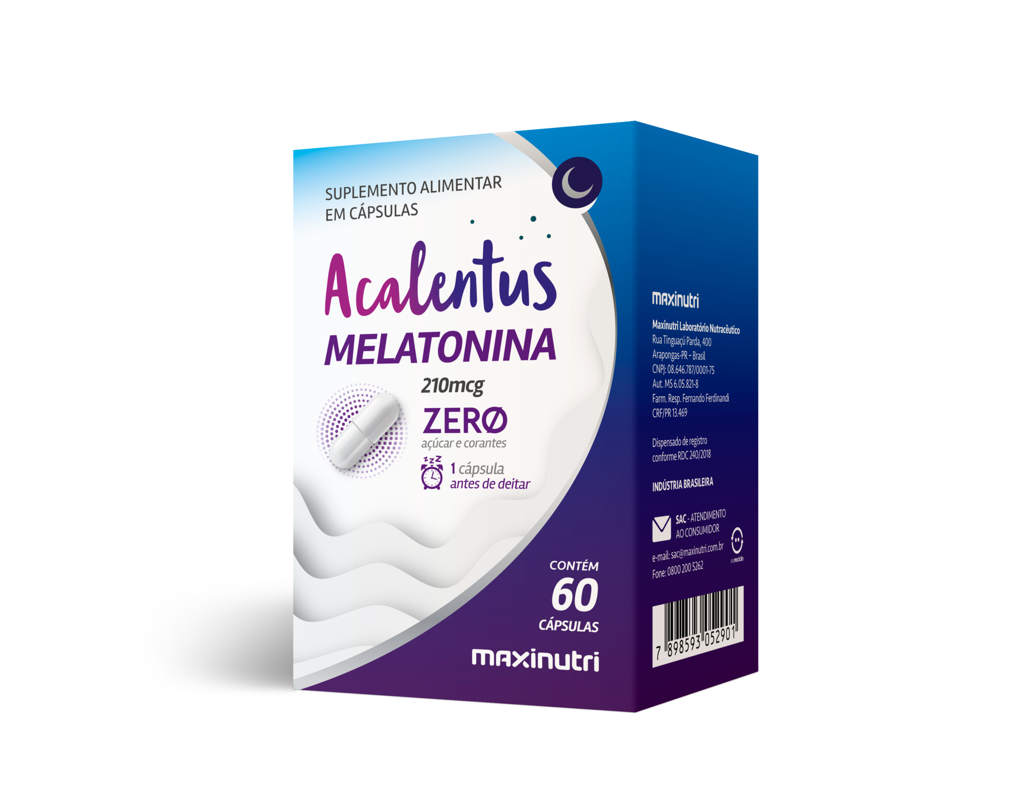 O Acalentus Maxinutri é um suplemento alimentar de Melatonina em cápsulas, que auxilia na regulação do sono, melhora o sistema imune e reduz o envelhecimento celular.